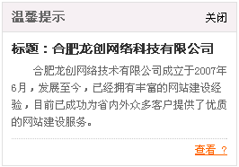 一個好用的jquery右下角pop彈窗,類似discuz右下角消息提示框,帶關閉按鈕,可展示一段時間后自動隱藏。 經測試,完美兼容ie6/7/8/9 ff chrome等瀏覽器。 本效果主要是用css中position的fixed屬性,但是ie6不支持此屬性,通過jquery.fixed.js插件實現(xiàn)了兼容